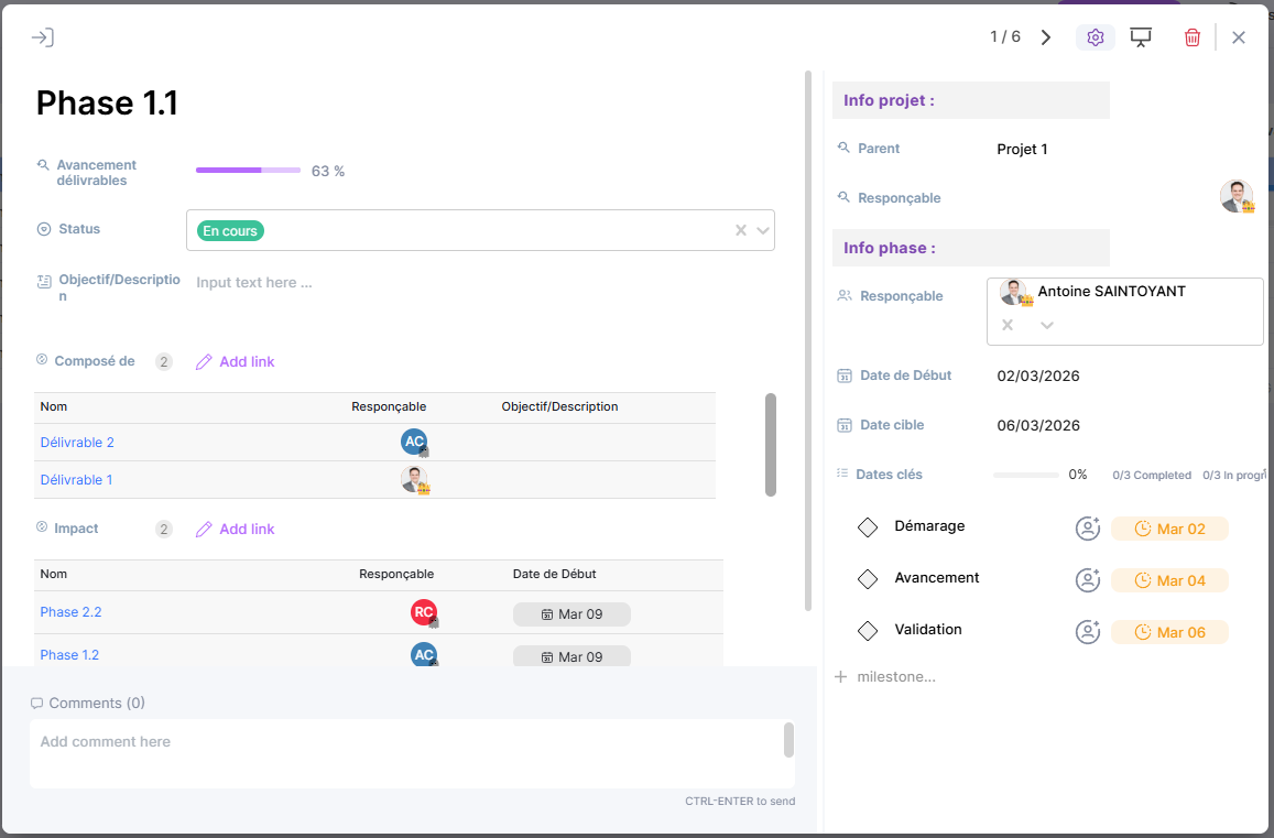 Dans mon formulaire pour mes phases, je fait afficher une information du chef de projet.
